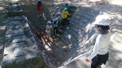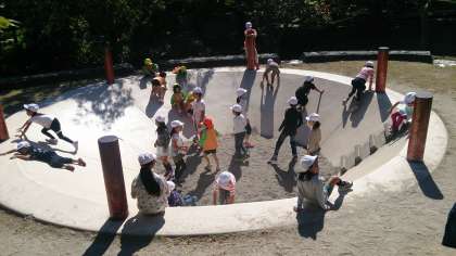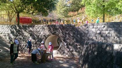 色とりどりの木々に囲まれた遊園地で,たっぷりと遊びを楽しんでいます。