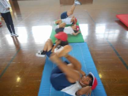 体育の学習では,マット運動に入った所です。