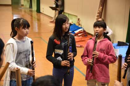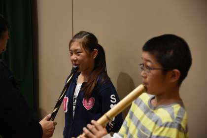 邦楽体験教室で,尺八を教えてもらいました。うまく音が出るようにはまだまだ時間がかかりそうですが,音が出せる楽しみを味わっていました。