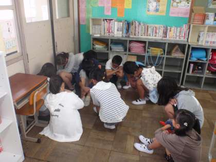 不審者が学校内に侵入したことを想定して,避難訓練をしました。事前に学習した通りに訓練を行うことができました。