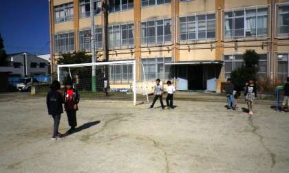 今日の全員遊びは「ドン じゃんけん」でした。くねくね道を書いて,楽しそうに走っていました。