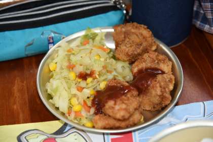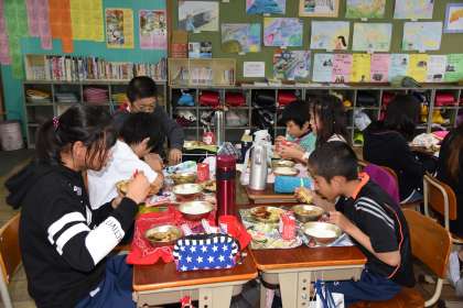 給食に感謝する行事献立でした。「ヒレカツ」と「野菜のソテー」を喜んで食べていました。「みそ汁」も大人気でした。