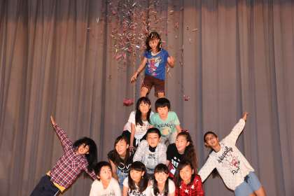 発表が終わってからアンコールの拍手が起こりました。運動会で踊った「悲しみなんて笑い飛ばせ」の曲で,動く組体操をしまいた。スリリングな場面の連続でした。