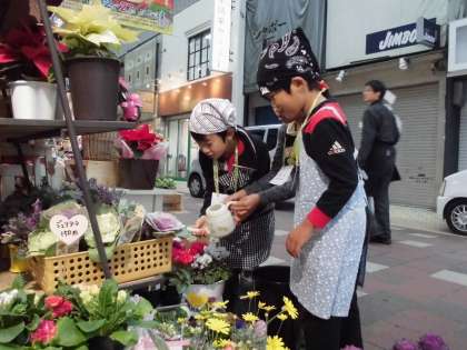 花屋さんでは,花に水をあげたりとお世話をさせていただきました。