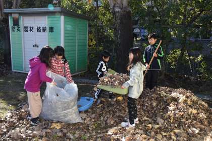 チャレンジ活動が始まりました。今回の活動は「落ち葉拾い」です。なかよしグループで力を合わせて集めました。6年生の指示を待たずに,みんながテキパキと活動していました。