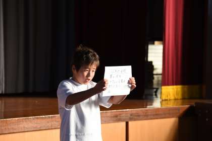 児童会から12月の生活目標が発表させました。12月の目標は「寒い日も,優しい言葉は温かい」です。目標向かって,6年生として実践します。