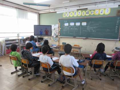 手話について学習をしました。「はじめの一歩」に手話を付けて歌いました。
