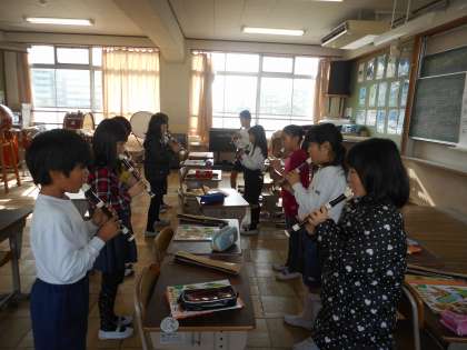 今日の音楽の時間は,パフやエーデルワイスを演奏しました。