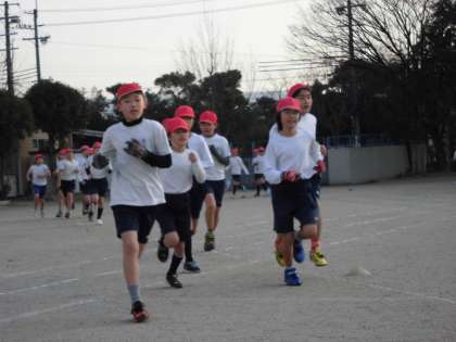 さすがに6年生はトップを走り力強さを感じます。後には5年生もよく走っています。