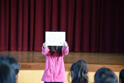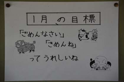 1月の生活目標が児童会から発表されました。目標は「『ごめんなさい,ごめんね』ってうれしいね」です。1月の目標ですが,卒業までこの気持ちを大切にしたいと話し合いました。