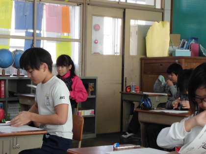 今日はジョイントプログラムのテストの三教科目で,理科をしました。とっても真剣に40分間取り組みました。