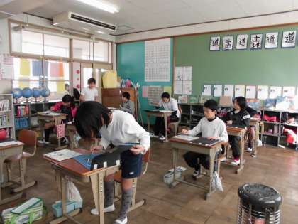 版画の色がなかなか思ったようにつかなく,細かい作業のため思わず立ってやる人もいました。