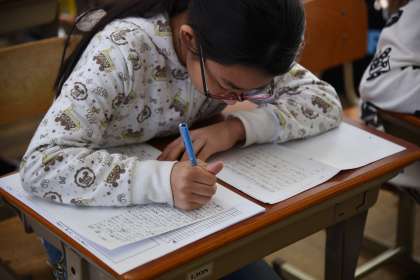卒業文集に載せる作文を書き始めています。6年間の思い出や将来の夢を書いています。