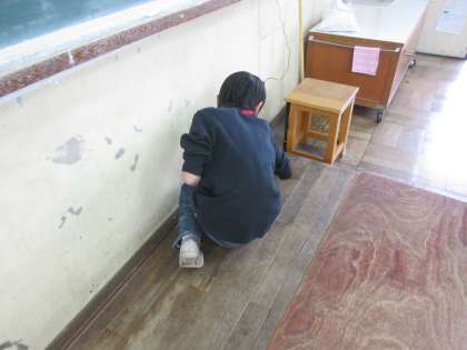 掃除をがんばっています。今日は,黒板の下をきれいに拭いていました。