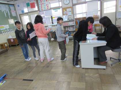 今日は,教室で算数教室をしました。表を見て考える問題や図形の問題に取り組みました。