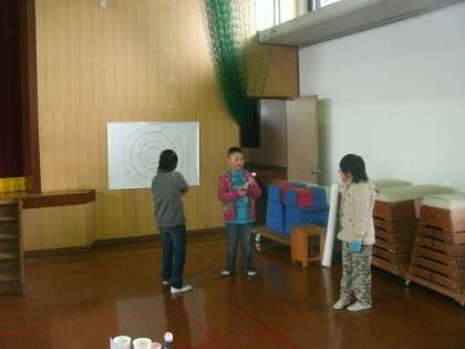 磁石を使って動かす迷路,風を送ってゴールまで車を走らせるゲーム,ペットボトルを使った的当てです。