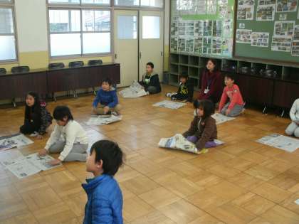 地域の楽生会の方にお世話になって,昔の遊びを教えていただきました。2時間目には,新聞や広告の紙を使って,かぶとを作ったり紙ひこうきを作ったりしました。