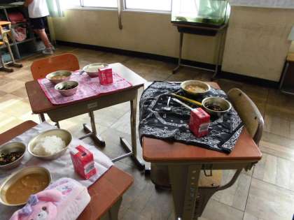 誰も減らすことのない給食でした。カレーもごはんも山盛りでとっても幸せな時間でした。カレーのときは,まあまあ余裕で時間内に食べきれます。