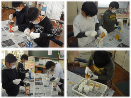 給食で使った後の廃油を使って,環境にやさしい石けんを作りました。