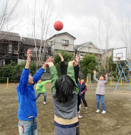 全員でバスケットボールを楽しんでいました。