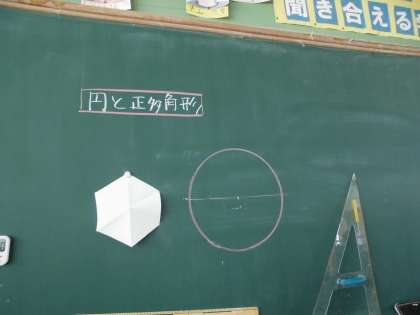 算数の学習で正多角形に入りました。六角形をつくることに四苦八苦。八角形を作るはずが四角形!という楽しい授業になっています。