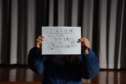2月の児童会目標は「心にささる ちくちく言葉より 心をつつむ ふわふわ言葉」です。6年生は卒業までもう少しです。友達と交わす言葉を大切にしながら過ごして欲しいです。