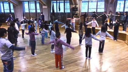 今朝は6時半に起き,部屋の掃除をして朝の集いを行いました。