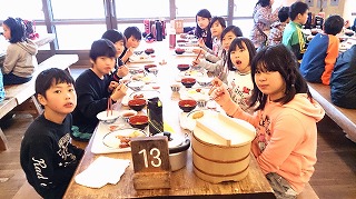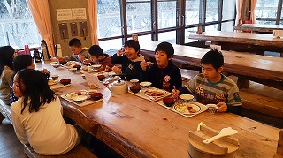 今日は一日スキーや雪遊びを満喫したので,お腹もすいていたでしょう。