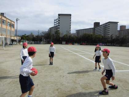 今日の体育から,「エンドボール」に挑戦しています。