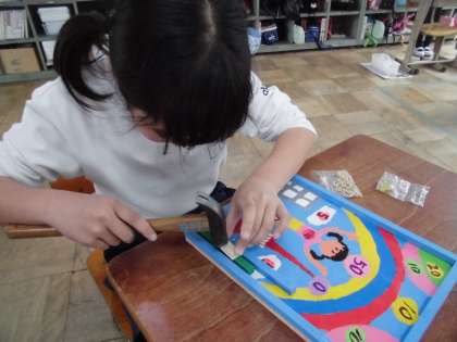 初めての金槌ですが,みんなとても上手に使っています。