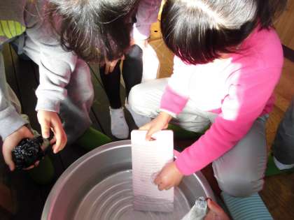 そこで,今日は実際に洗濯板を使って靴下を洗ってみました!