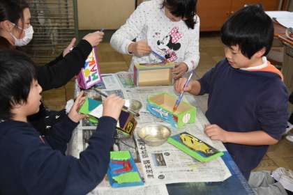 オルゴールにニス塗り(6年生)