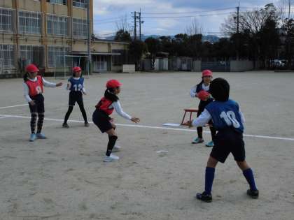 体育では,エンドボールの学習をしています。