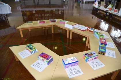 6年生は,オルゴールと版画を造形展に出展しています。造形展は21日まで行われています。見に来てください。
