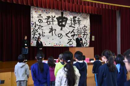 新しい先生をお迎えする朝会がありました。6年生はもうすぐ卒業ですが,たくさん関わりをもって欲しいです。