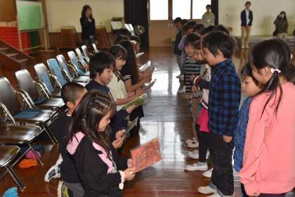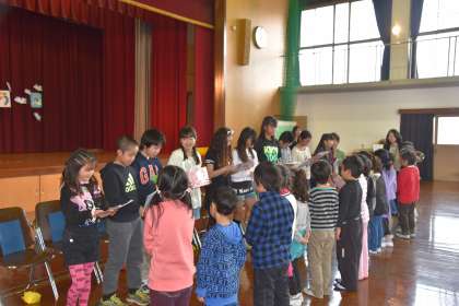 6年生を送る会で,なかよしグループ毎に手紙をもらいました。1年生が代表で渡してくれました。終わってから読むと,1年生から5年生までの温かい言葉がたくさん書かれていました。