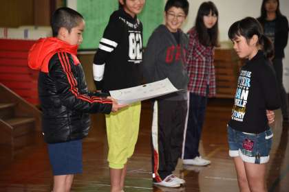 3月ですので,今年度最後の児童朝会です。委員会の委員長として定例の報告をしました。委員長として立派に活躍してくれました。日常の活動も引き続き頑張りましょう。