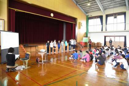 4年生が,二の北タイムで発表してくれました。山の家での宿泊学習を発表してくれました。6年生は,昨年5年生で行きました。その時のことを思い出しながら,感想を話してくれました。