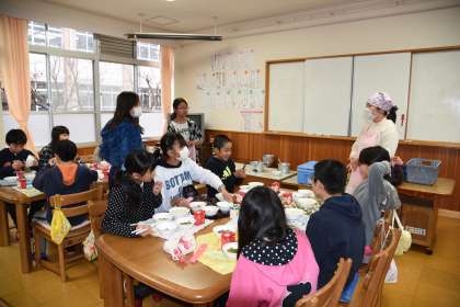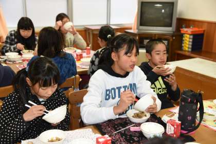 栄養教諭の河野先生とランチルームで給食を食べました。ランチルームで食べる給食は,いつも美味しいですね。
