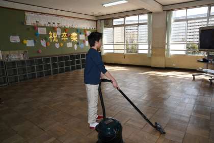 卒業生数人が学校に来てくれて,教室から全ての机,椅子,ロッカーなどを廊下に出し,床の大掃除をしました。ワックスもかけてきれいにしました。これで次の学級に気持ちよく教室を使ってもらえそうです。