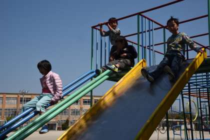 2年生になったので,総合遊具の上まで上がって良いことになりました。滑り台を使うこともできるようになりました。休み時間は総合遊具で遊ぶことが楽しい2年生です。