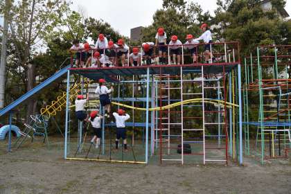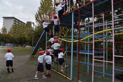 2年生になったので,総合遊具の2段目まで上がることが許されました。体育の時間に遊び方を勉強しました。滑り台も使えるようになったので,楽しみが増えました。