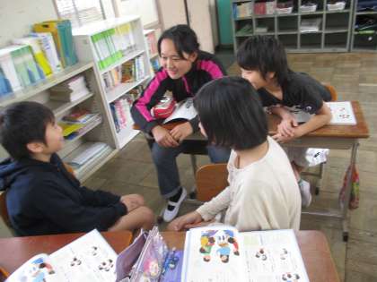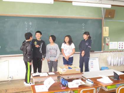 お話づくりをしました。最初の一文と最後の一文は決まっていて,その間のストーリーを考えていきます。自分の番が来るまで,どんな話になっているかがわかりません。なので,瞬時に考え,発表していきます。男子も女子も,とても盛り上がりました。笑い転げるほど,面白かったです。笑いのセンスもバッチリです。
