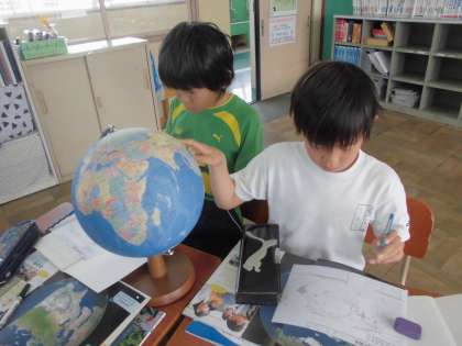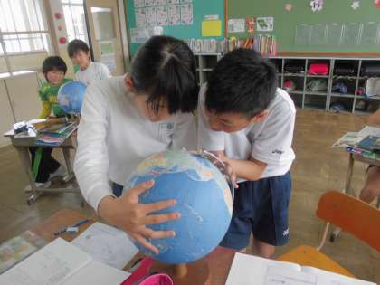 今日の社会の学習では,地球の写真から分かることを考えたり,