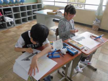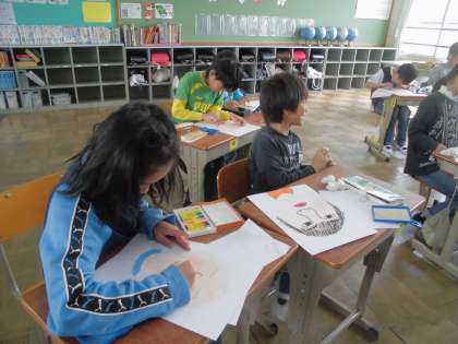 今日の図工の時間は,鏡を見ながら自画像を描きました。