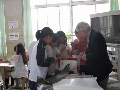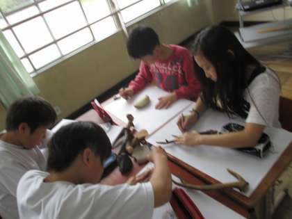そしてその後,縄文時代の頃の「マンモスの牙」や「鹿のつの」,「黒曜石」など,色々なものを見せていただき,それをかたどり,作品にしてみました。子どもたちは,とても興味津々で,いろいろなものをかたどることができました。中には,休み時間も手に取って見ている姿もありました。
