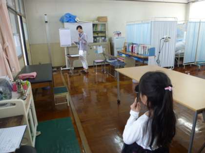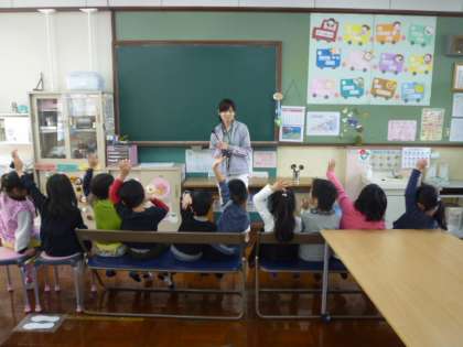 しっかりと「みぎ」「ひだり」いえるかな?と思っていましたが,1年生の10人の子どもたちは皆大きな声で「みぎ」「ひだり」「うえ」「した」が言えましたね。とても感心しました。