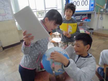 すぐに地球儀をくるくるとまわして探し出す準備をしていました。