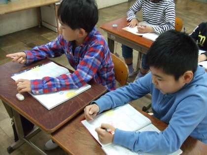 わたしたちの道徳のノートに3年生の自分のことについて書き込みました。好きな遊び,好きなスポーツ,尊敬する人,将来の夢など,じっくり考えて書きました。となりには4年生の自分について書き込むページがあります。1年後にはどんな変化があるのか楽しみです。