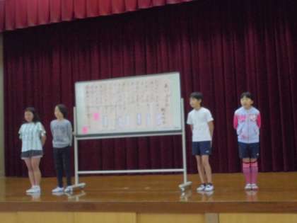今日は学級代表の人たちが前に出てあいさつしたり,